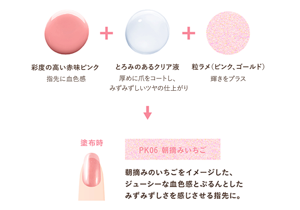 ジューシーな血色感とぷるんとしたみずみずしさを感じる指先を演出します。